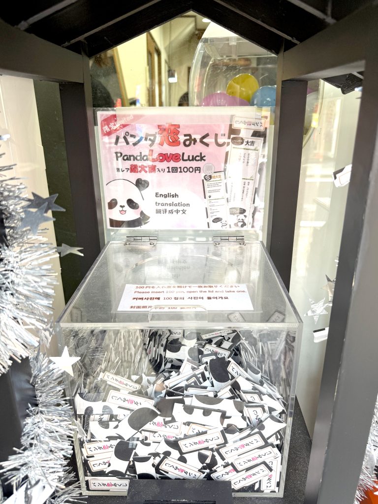 このようにグループのお客さまが店頭で立ち止まってワイワイ楽しんでいれば、お店の賑わいになります。賑わっているお店は他の周りのお客さまからも注目されます。店頭での滞在時間を伸ばす仕掛けとしても、ガチャガチャとおみくじスタンドの併用は有効なんです。